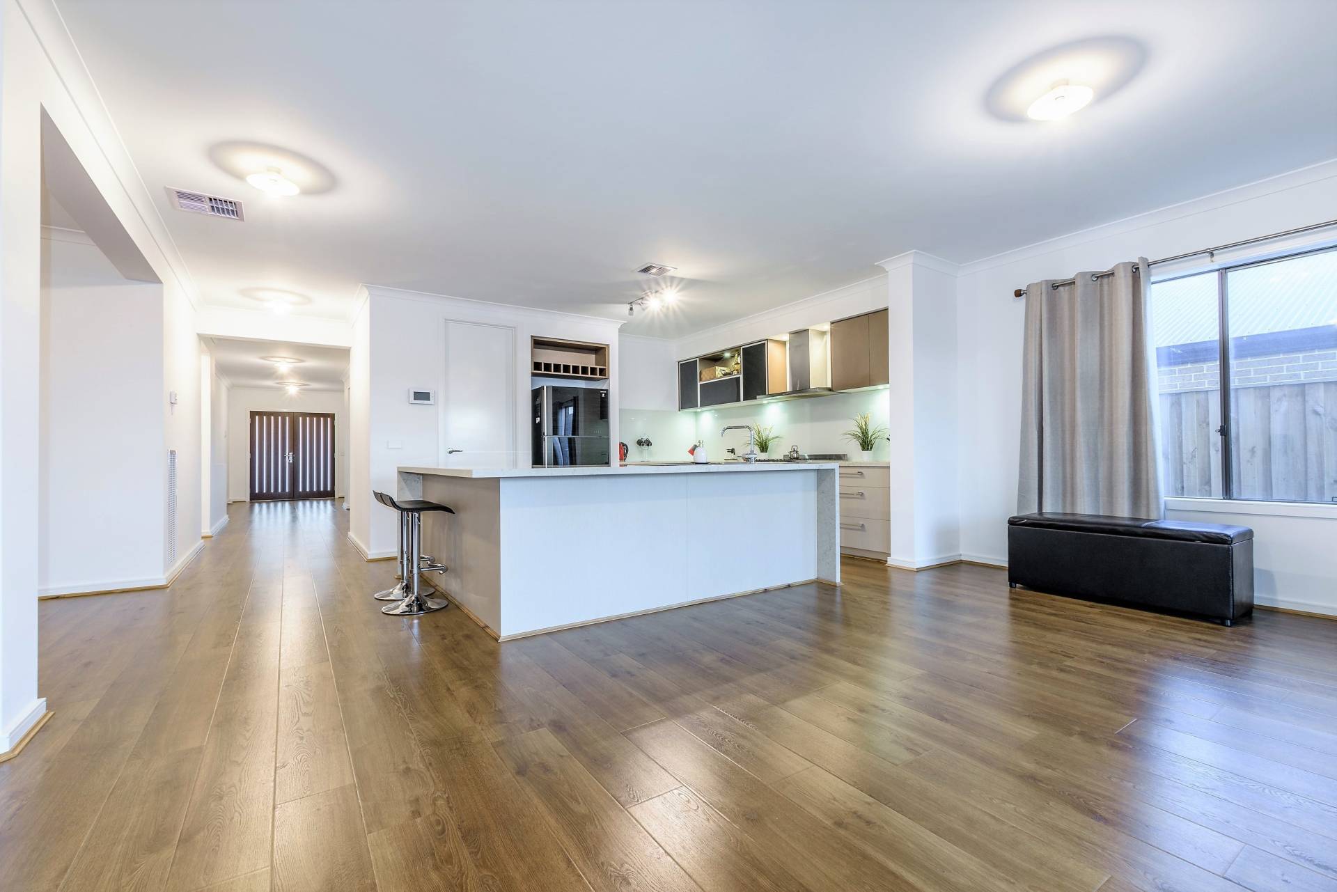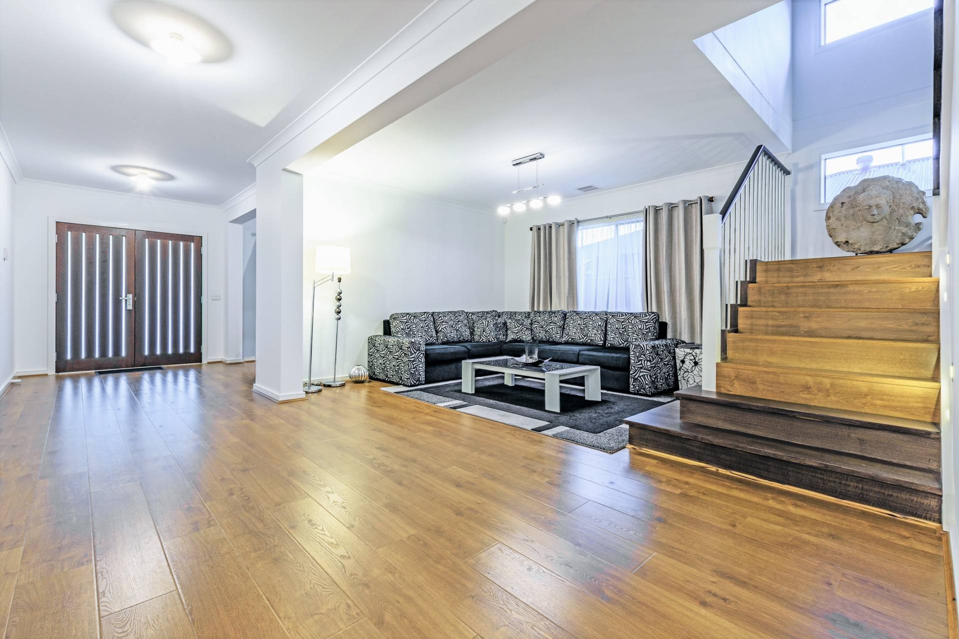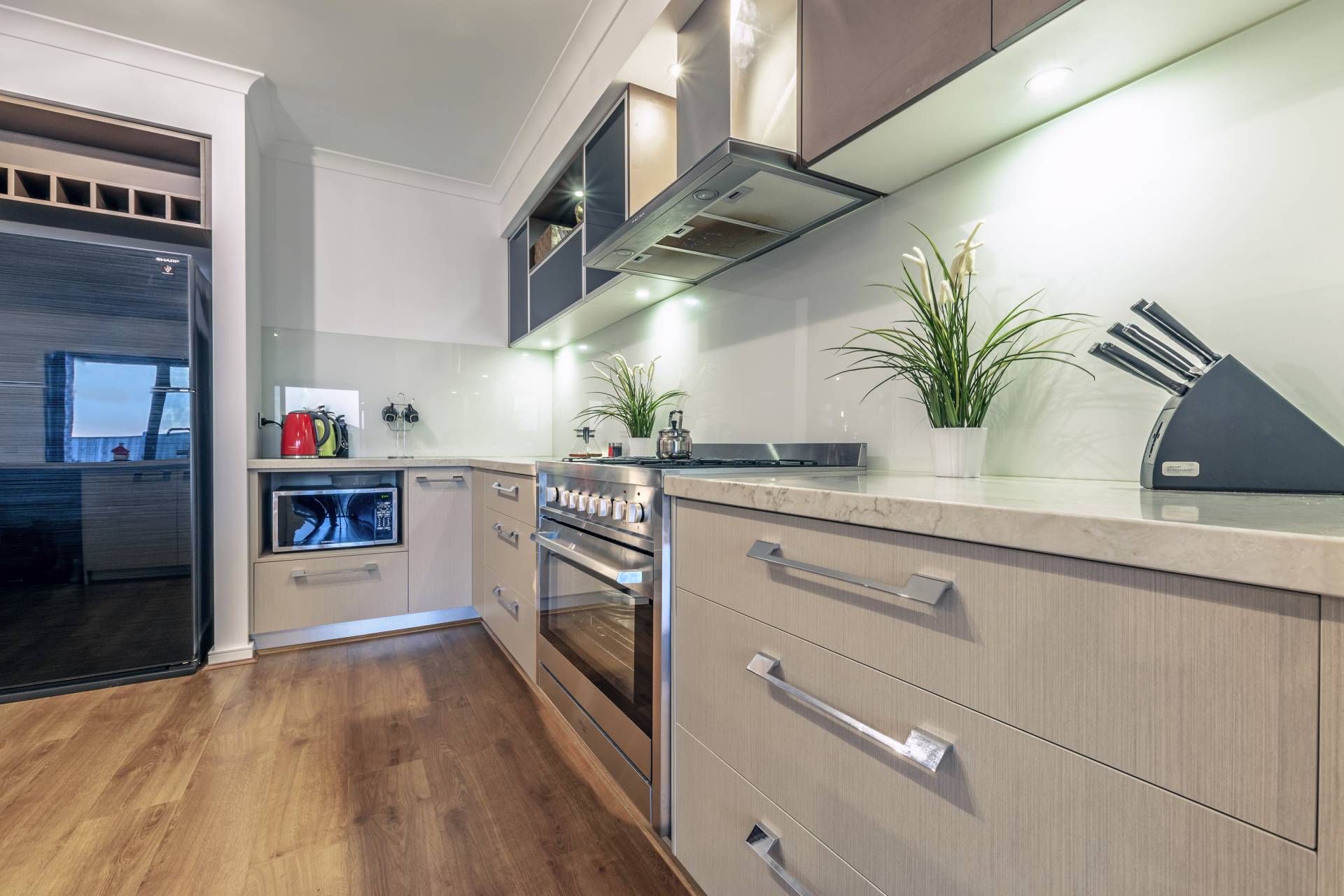 The very stylish modern open kitchen features an island bench with marble stone bench tops, generous size cupboards, soft close drawers and quality fixtures and lighting. Walk in pantry, 900mm stainless steel appliances that include a 900mm cook top, range-hood and dishwasher.