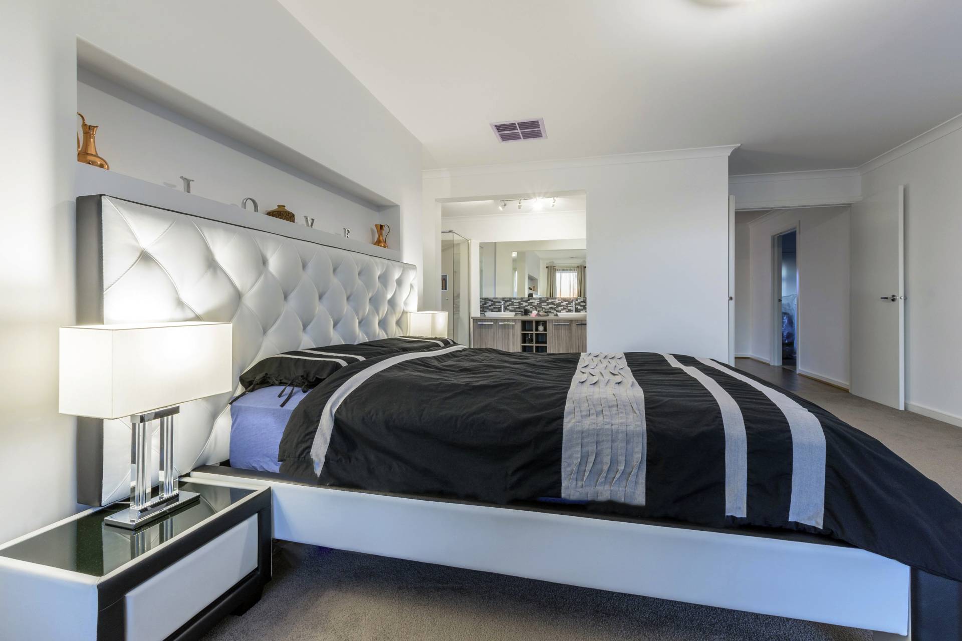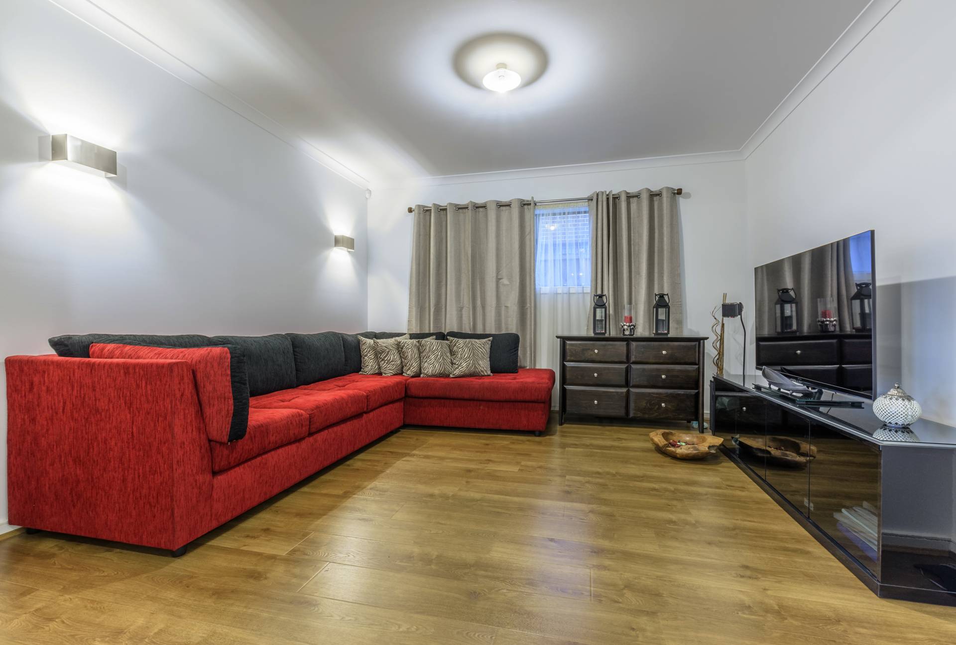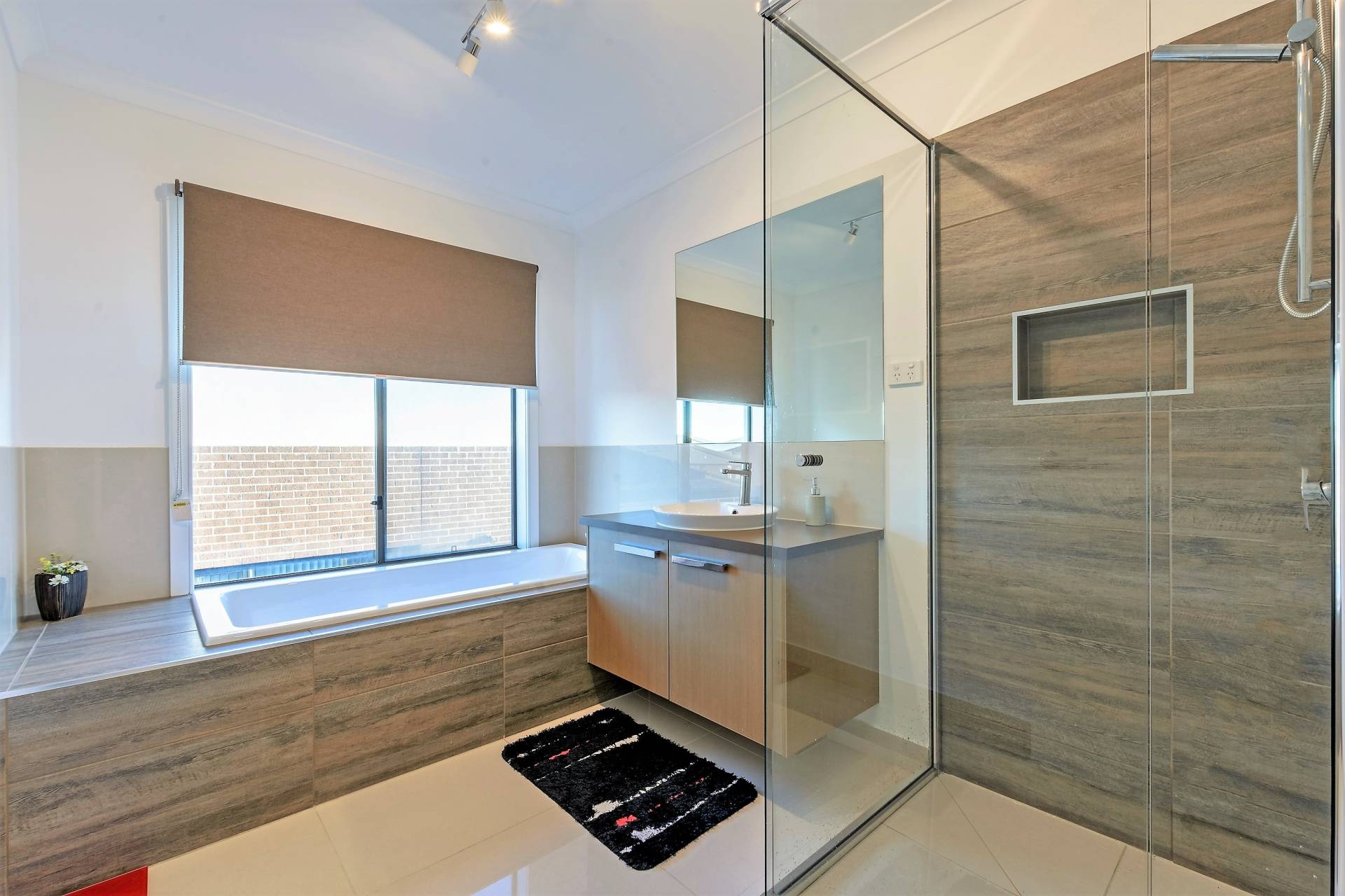 The very stylish modern open kitchen features an island bench with marble stone bench tops, generous size cupboards, soft close drawers and quality fixtures and lighting. Walk in pantry, 900mm stainless steel appliances that include a 900mm cook top, range-hood and dishwasher.