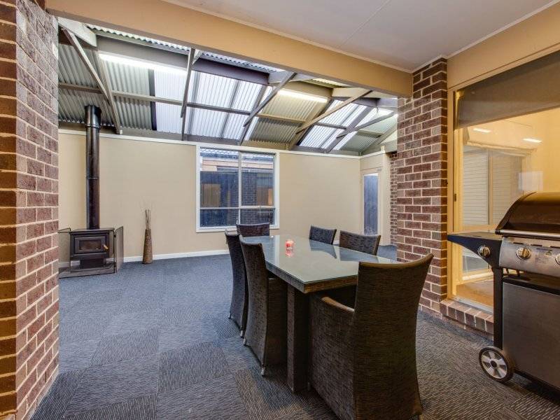 Step outside the rumpus/cinema room the massive alfresco/bbq area under covered pergola with Conara wood heater and beautiful carpet tiles throughout is an ideal area for kids to play all seasons or ideal for a home Gym, double lockup garage with a rear roller door gives access to the pergola from the garage.